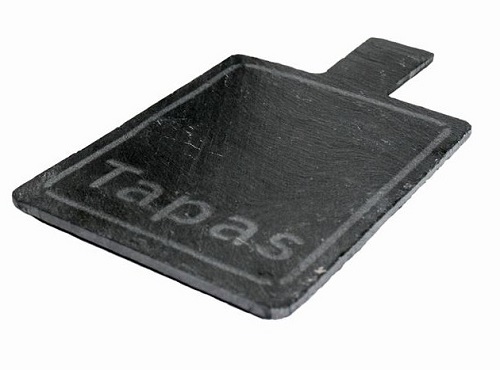 Блюдо для подачи прямоуг. 14*11 см. h=0,8 см. черное, сланец с ручкой VB /1/6/12/